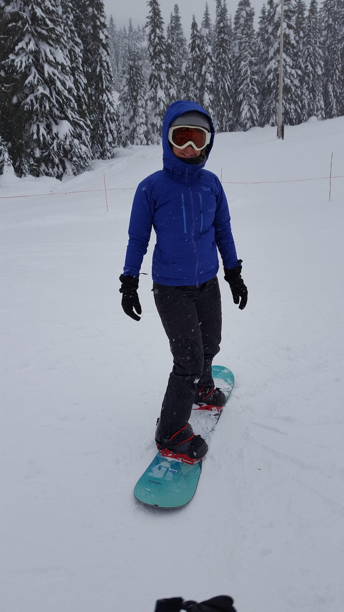 We had some time to kill, so we headed over to the “learning area” to humiliate ourselves. This mostly involved exhausting ourselves trying to buckle up our bindings. I had so many pairs of pants on that bending over cut off my air supply, leaving me lightheaded. This lack of oxygen to the brain convinced me that we were ready to try going down a hill. We took a “magic carpet” to the top, neglecting to realize that we didn’t know how to brake or stop until we got to the bottom of the hill. We solved that issue by crumpling into balls of inexperience. Fortunately we were in blizzard-like conditions, with snow both padding our falls and obscuring us from the judging eyes of four-year-old ringers.