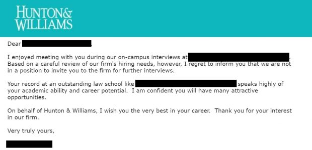 Hunton & Williams: a firm that’s serving up double-whammy rejections.