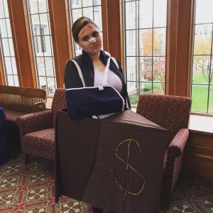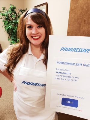 First up, we’ve got someone who dressed up as “insuring domestic tranquility.” She’s naturally costumed as Flo from Progressive (insure), with a home (domestic) quote for Tran Quility.