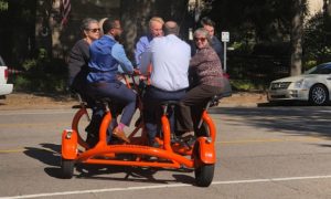 — Dean Rich Leonard of the Campbell University Norman Adrian Wiggins School of Law commenting on the school’s new conference bike, which seats seven people. Campbell Law is the first school in the country to purchase one of these bikes.