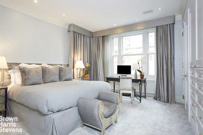 The master bedroom, at 13 feet by 14 feet, isn’t huge — but that’s partly because of the ample closet space, which you can see off to the right:
