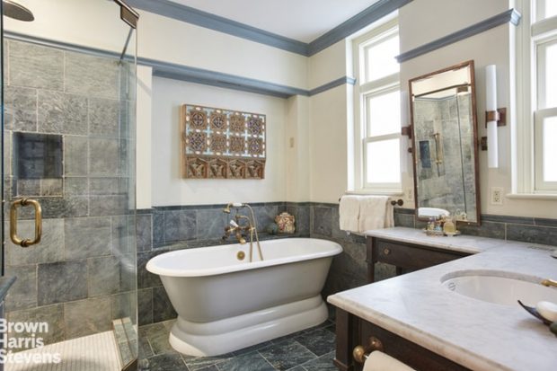And it seems that much of the space in the master suite was devoted to the bath, which has his-and-hers sinks, a large shower, and a bathtub: