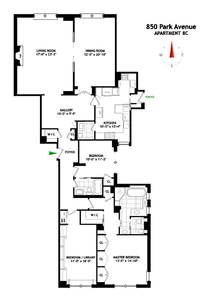 The layout might strike some as odd — the gallery is arguably wasted space, and some folks might not like a bedroom right off the foyer — but it’s par for the pre-war course. And pre-war buildings like 850 Park — designed by Rouse & Goldstone, and built in 1914 — have compensating virtues, like high-quality construction and craftsmanship that you seldom see today.