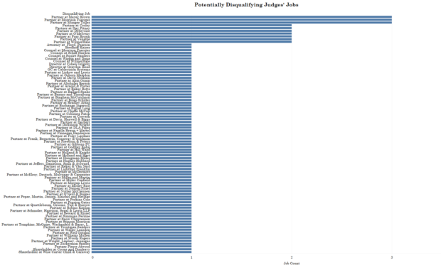 Many of the judges who would not be disqualified under this Biglaw partner rule worked in private practices as solo practitioners or with a limited number of partners. This does not necessarily mean they represented different clients than other judicial nominees, but with smaller firms they likely had fewer resources to manage multiple large accounts. Thus, firm size might be a good proxy for the extent of this type of business a firm or attorney can handle.