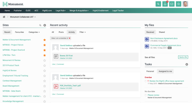 The folks behind HighQ started out with a mission that sounds simple enough: to transform the way law firms and corporate legal departments work and engage with their clients and colleagues. While the effort that went into creating HighQ might have been anything but simple, its developers succeeded in creating a sophisticated, user-friendly way to make collaboration and engagement a breeze, complete with efficient automation of legal processes and better management of complex projects and transactions.