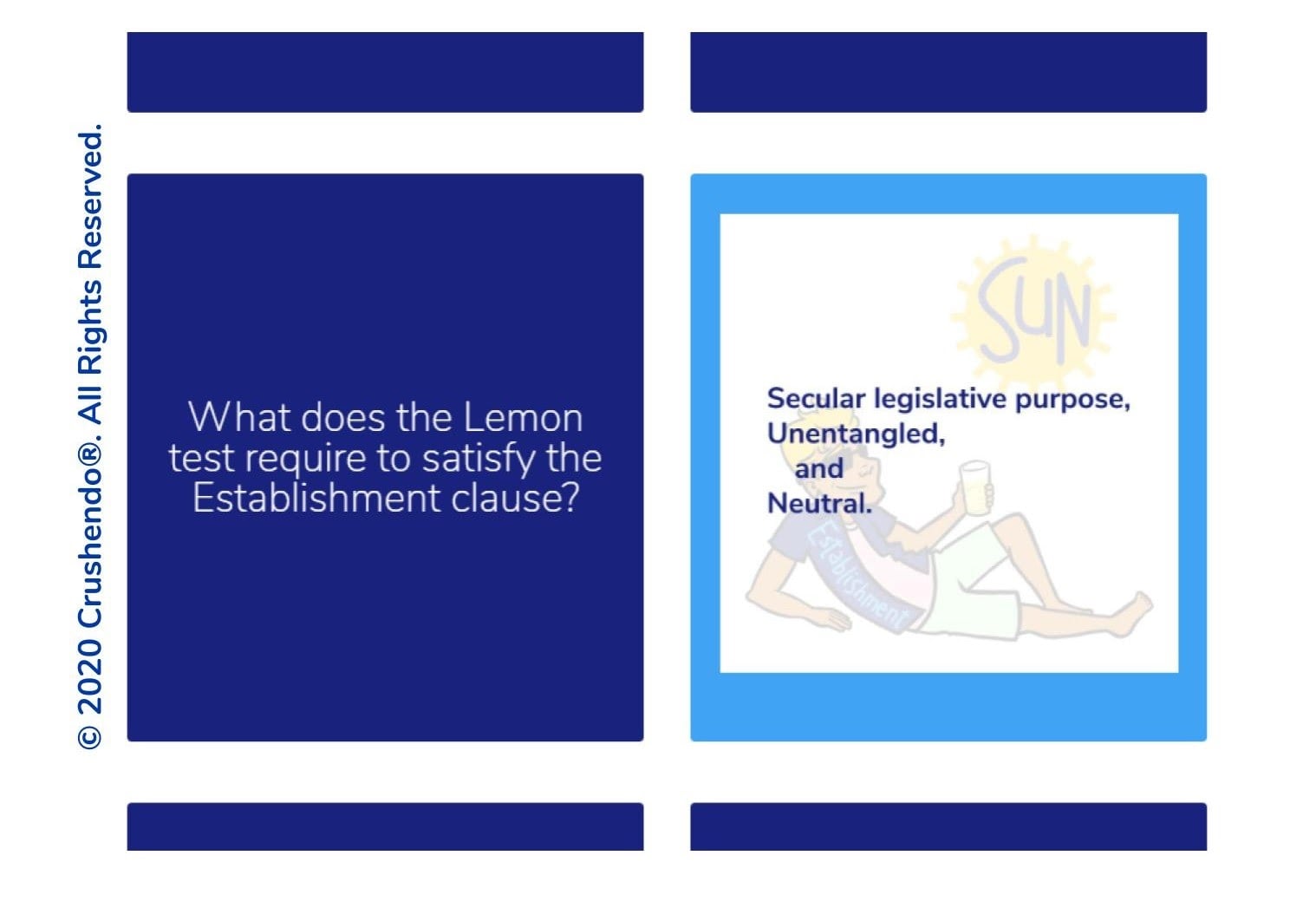 Whether you’re preparing for law school finals, the UBE (or any its subparts – MBE, MEE, or MPT), your state bar exam, or the MPRE, Crushendo is the flexible study system that gives you the freedom to study and cram when and where you want. You get lifetime access to your materials for a fraction of the cost of any other equally comprehensive study program, and there’s even financing available if you need it. There’s also a 30-day, no-questions-asked, money-back trial period for you to test it out (though if you’re like 98% of their users, you won’t change your mind).