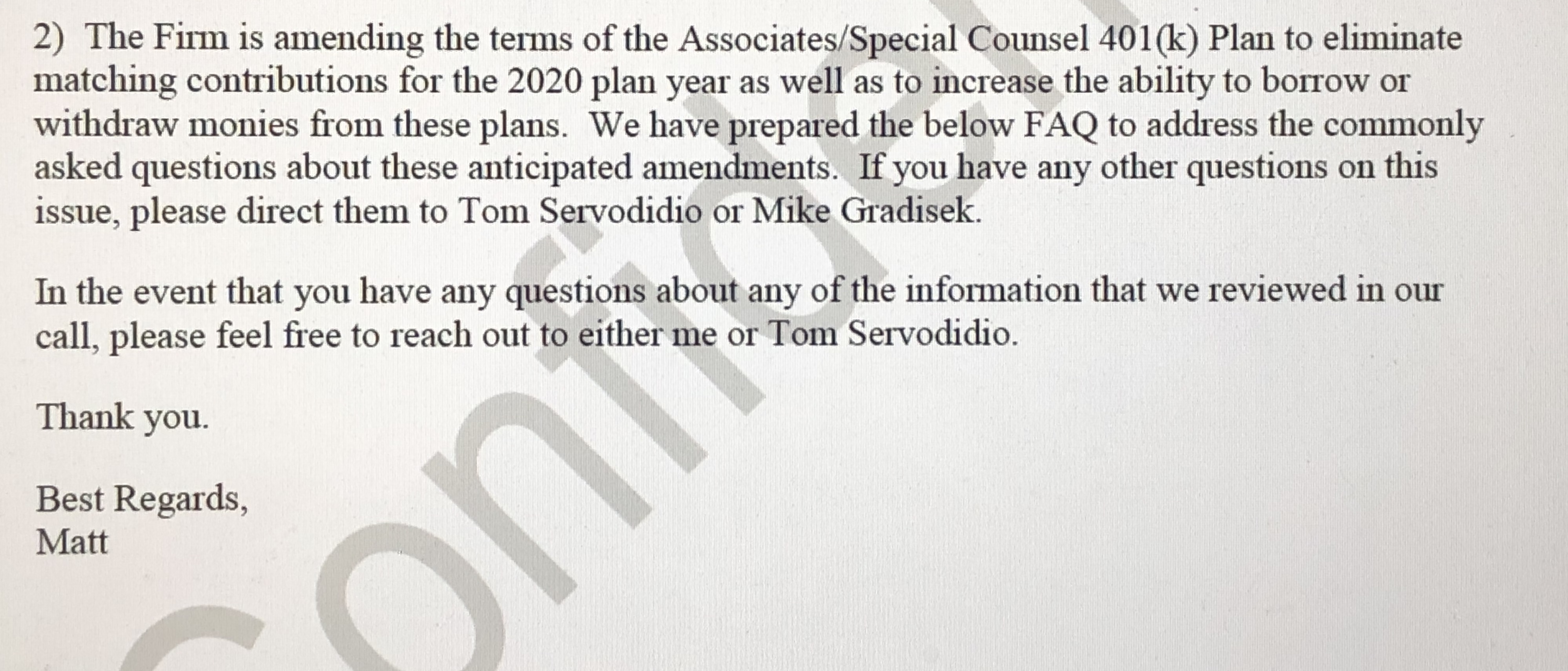 Perhaps the firm just expected March to be a dumpster fire? Either way, it sounds like (at least some of) the rank and file got the impression they’d avoid cuts, when maybe they merely meant to signal no layoffs were on the horizon? Whatever misimpressions previously circulated at Duane Morris, we now have a clear understanding of the firm’s austerity measures.