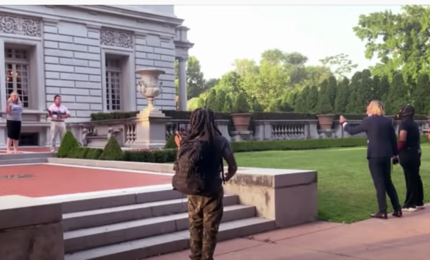 And, yes, it is a gated community which means the protesters were trespassing, though video of the march entering the area shows them walking through an open and unbroken gate which mitigates the argument that folks knew they were casually trespassing. And even if they were, aiming deadly weapons at people is going to trump trespassing every time. The video includes pictures of the event showing the protesters very intentionally NOT stepping onto McCloskey property. Unless they’ve adversely possessed the sidewalk (and, there are some places where sidewalks are designated as part of the property, but the point remains that these folks are pretty clearly holding at what the reasonable person would assume is the property line).