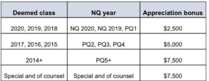 And if you’ve been particularly busy during the pandemic — on track to bill in excess of 1,950 hours — the firm will give you a bonus “materially higher than the amount listed above.” That’s a pretty nice way to say thank you for the hard work. (In a moment of touching humanity, the firm also acknowledged that financial perks may not cover everyone’s needs during this trying time and committed to continue hiring talent to ease some of the burden, and providing additional resources to everyone.)