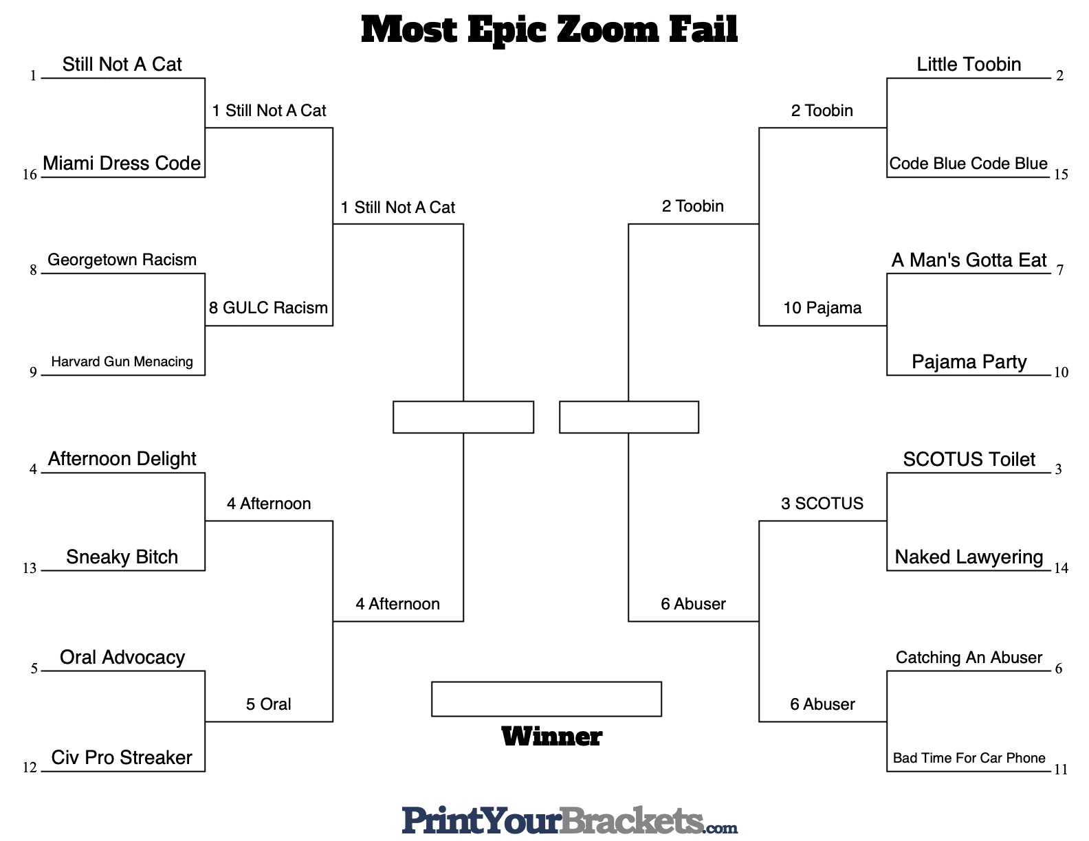 (1) Lawyer Tells Judge ‘I’m Not A Cat’ In The Best Zoom Court Mishap Yet vs. (4) Yep, That’s A Lawyer Having Sex On Camera During A Hearing!: Lawyer cat continues to roll through the tournament, but is he ready for a lawyer going at it during a criminal hearing?