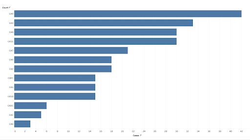 While the Ninth Circuit still comes out with the most cases so far, in this dataset, the Third, Fourth, and Eleventh Circuits are all not far behind.