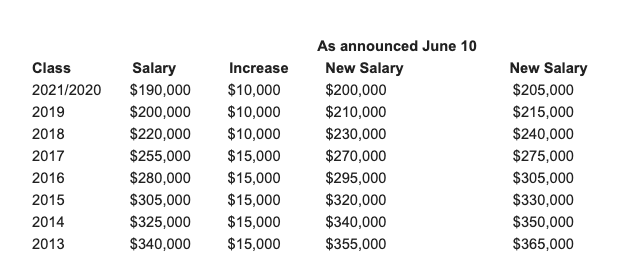 We are pleased to announce that we have adjusted upward the new salary schedule that we had previously announced. The updated schedule (which is set forth below) includes base salary increases for our associates in our US, London, Asia and Sao Paulo offices, effective July 1, 2021. Summer Associate salaries will also be increased to match the First Year salary. Salary increases for counsel and special associates will be determined and communicated individually.