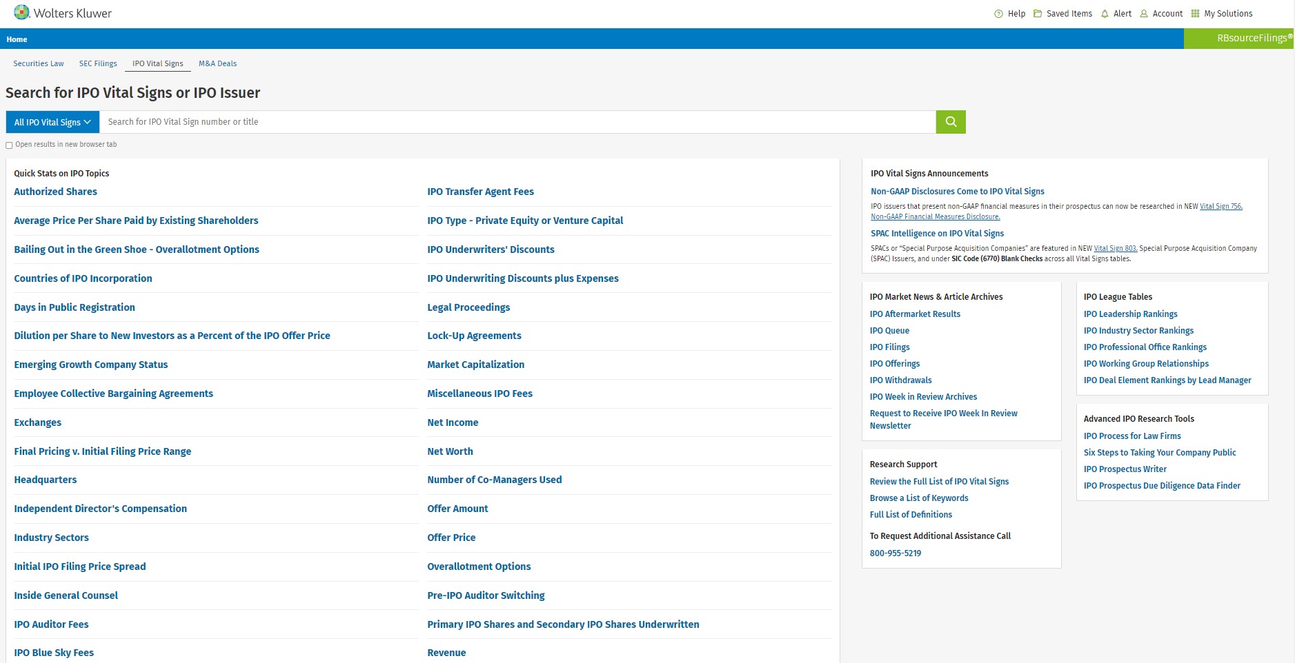Another useful tool is IPO Vital Signs, which offers invaluable guidance when you’re working on an IPO.