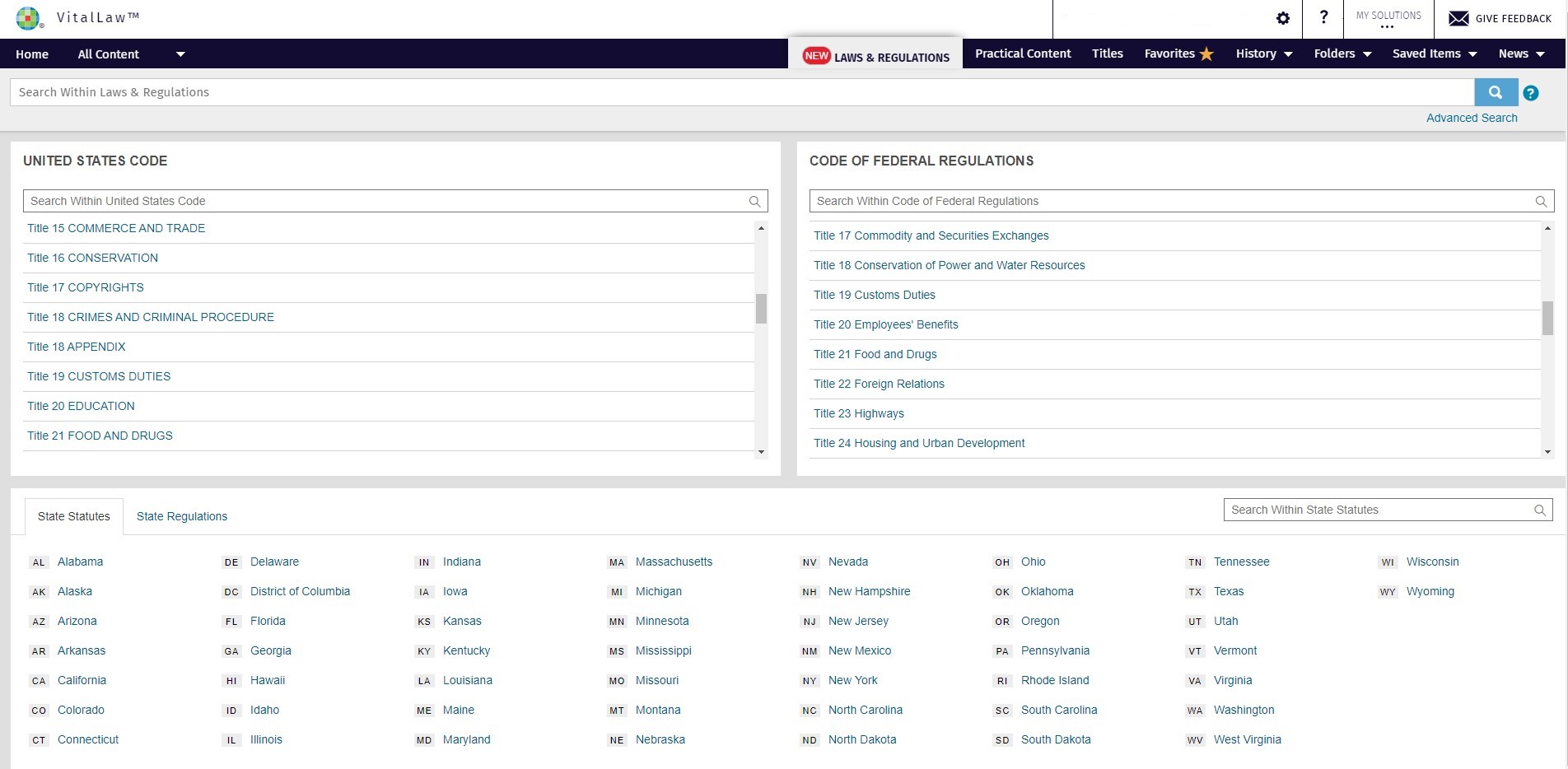 You can search the Laws & Regulations Dashboard for specific statutes or code sections, or focus in on laws from particular agencies, like the CFTC or the SEC. VitalLaw’s archives also paint a thorough picture of how laws have changed and evolved over time.