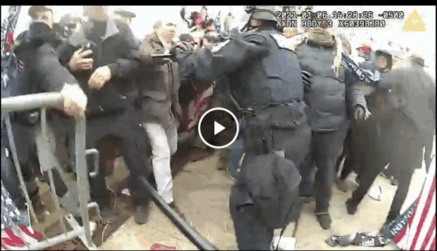 According to court documents, on the afternoon of Jan. 6, 2021, O’Kelly illegally made his way to the West front of the Capitol grounds where rioters were fighting with law enforcement officers attempting to maintain a police barrier. At approximately 2:28 pm, O’Kelly emerged from the crowd and grabbed at the baton of an officer, attempting to take the weapon from the officer. The officer fought back and was able to keep the baton in his possession. O’Kelly then took a step back and pushed a metal bike rack being used to secure the perimeter into the line of officers.