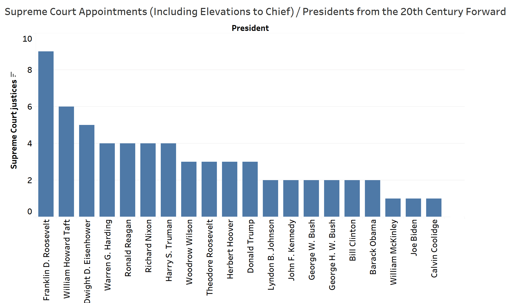 If presidents’ legacies are bound to their judicial appointments—especially Supreme Court justices—then the number of justices each president installs becomes a meaningful measure of lasting influence. While not every appointment produces the jurisprudence a president envisions, each represents an attempt to implant their vision of constitutional interpretation.