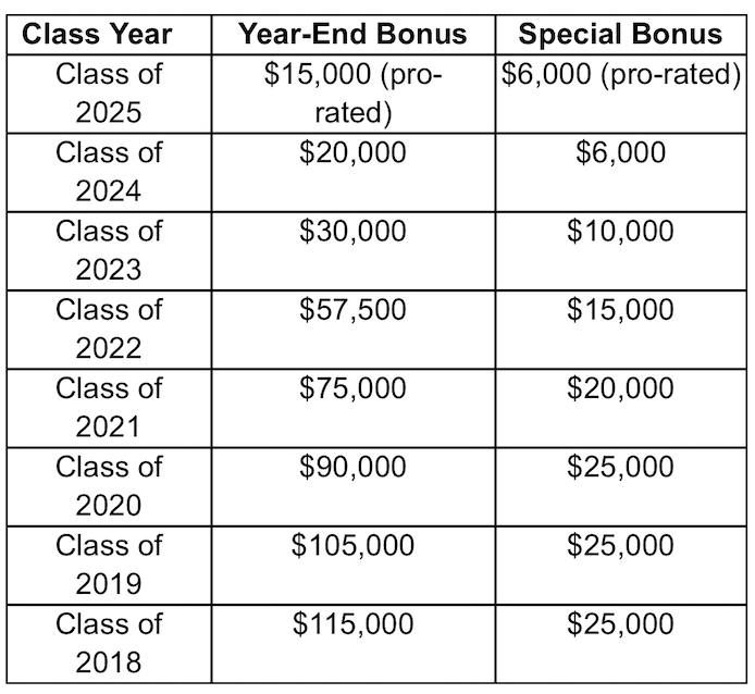 The bonuses will be paid on February 13, 2026 — just in time for associates to make that big, romantic purchase for the Valentine’s Day that they’ll miss while reviewing and revising choice of law clauses all weekend.