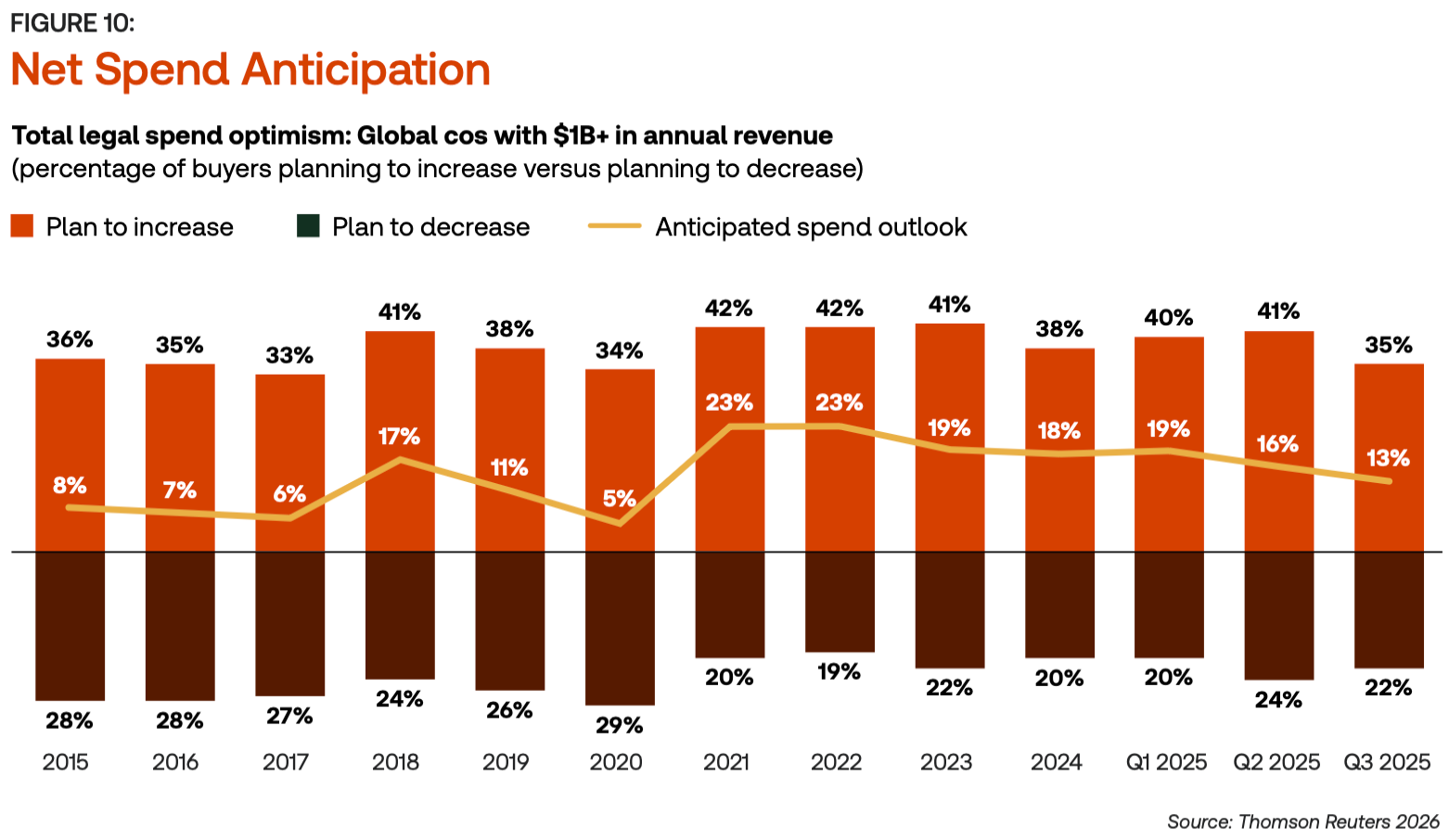 Spending going down right when law firm costs are going up? Sounds troubling.