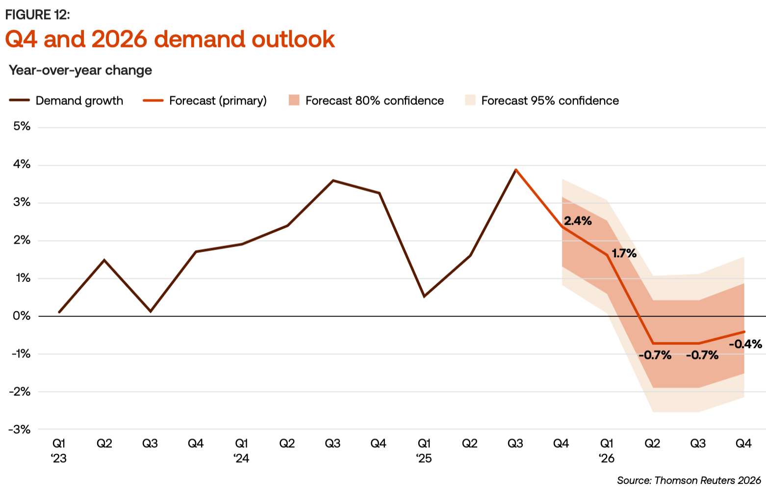 But while the report forecasts continued need for legal services amidst the chaos, it does see that need shrinking too: