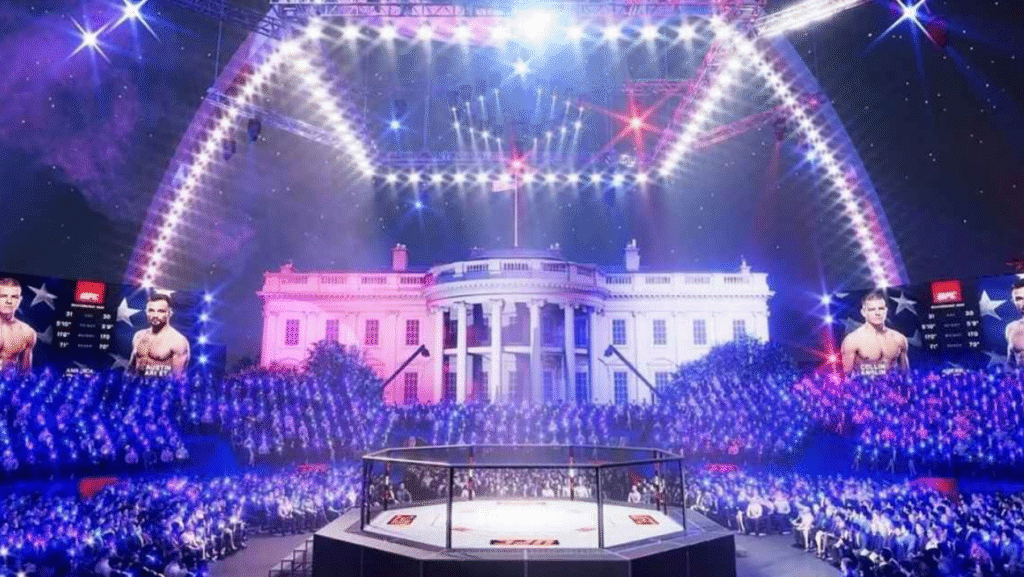 That’s the UFC match the official White House account claims Trump will place on the White House lawn. I guess maybe he’ll watch from the window of his ballroom? Is Trump now committing not to hang out in tents on the Ellipse to coordinate the next assault on the Capitol? That might be a nice fringe benefit for the country.