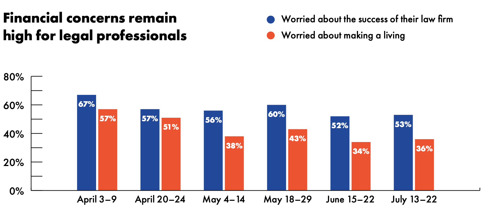That said, the report doesn’t hide that attorneys are still concerned, even if they are less worried than they were at the height of the pandemic-induced slowdown.